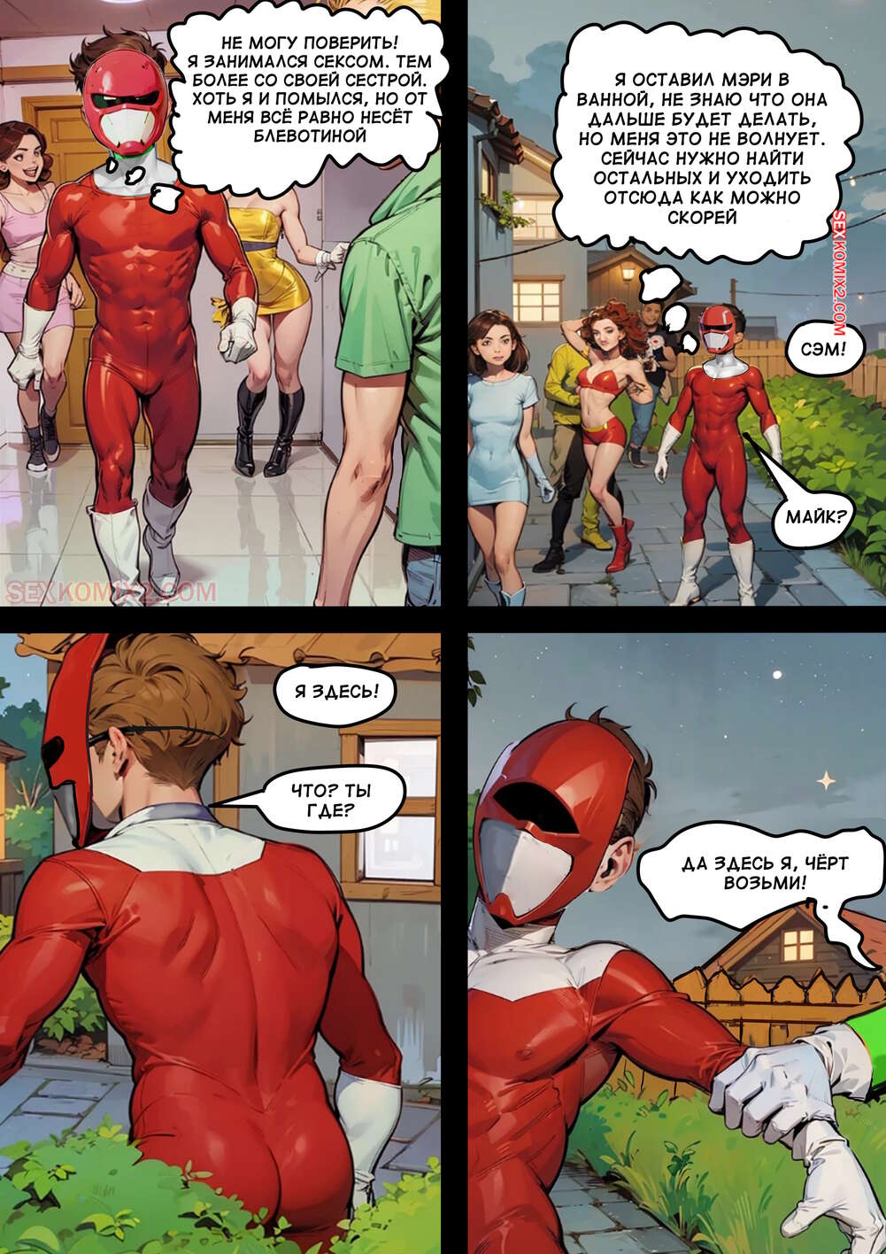 Порно комикс Девственная четверка. 4 virgins. mr cookie for sexkomix2.com. Компания друзей девственников прослышала о костюмированной вечеринке, но их никто не пригласил. Это не остановило наших героев: они надели костюмы и всё равно пошли. В конце концов, им удалось найти на вечеринке секс.