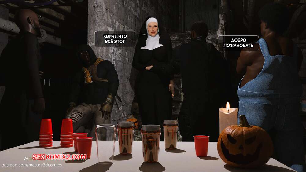 Порно комикс Грязный сосед. Часть 27. Naughty Neighbor. Mature3DComics Квинт привел Аву на вечеринку в честь Хэллоуина к своим друзьям. Они раздели красотку и дали отсосать свои большие члены, после чего хорошенько ее выебали и заполнили спермой.