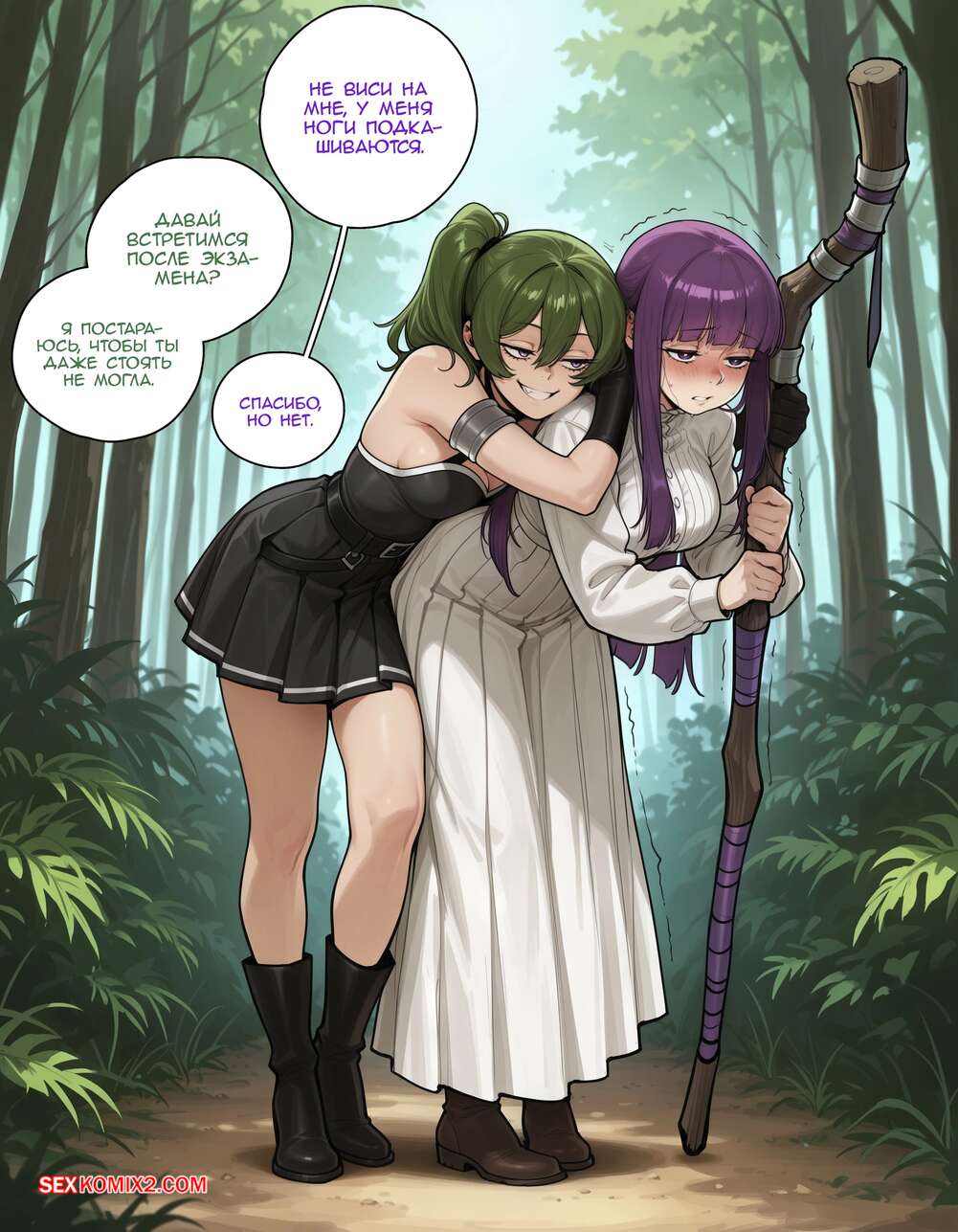 Порно комикс EnjoyerArtAI. Арты. Часть 11 Красотка обнимает Ферн сзади, желая ее возбудить и повеселиться. Брюнеточка встала раком и задрала юбку, после чего раздвинула ножки и дала подруге выебать свою пизду.
