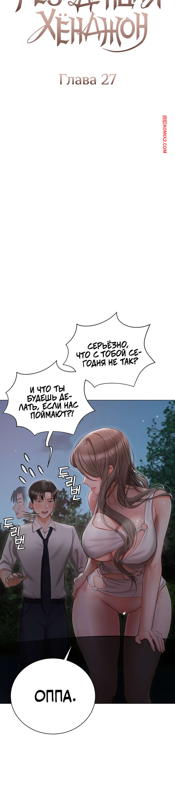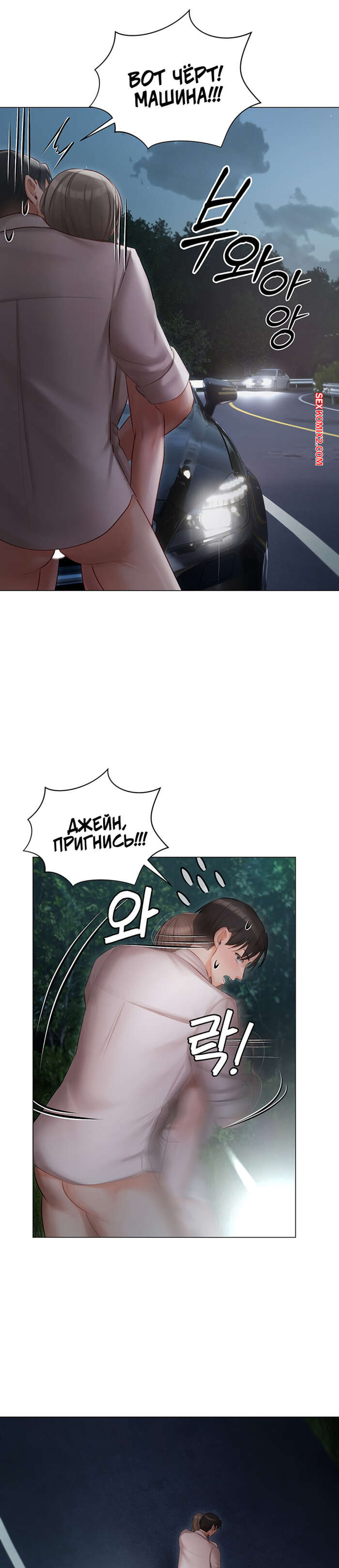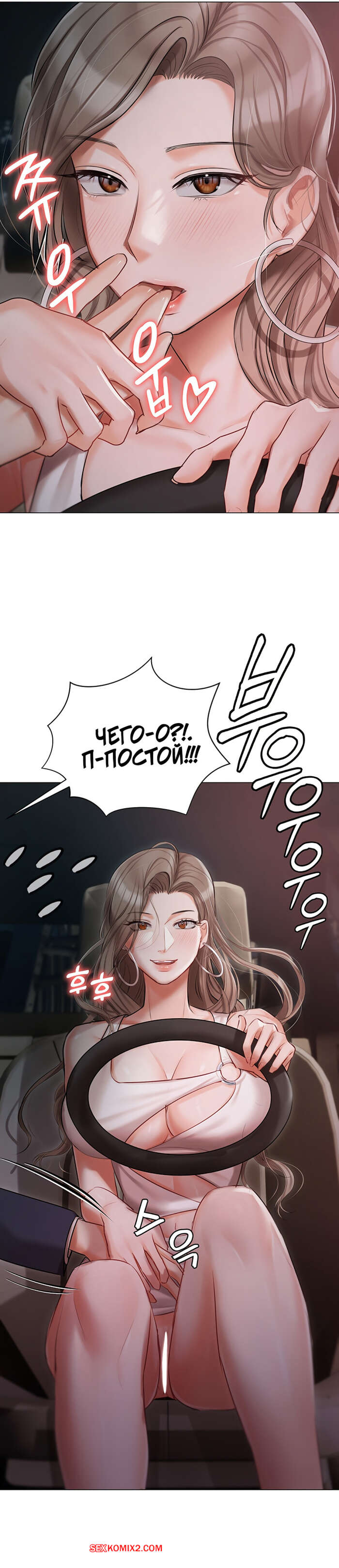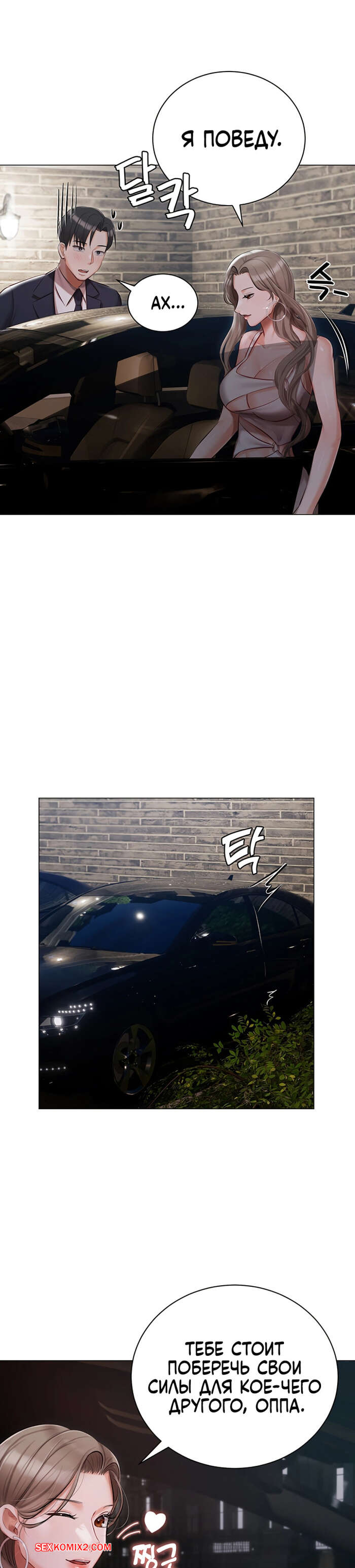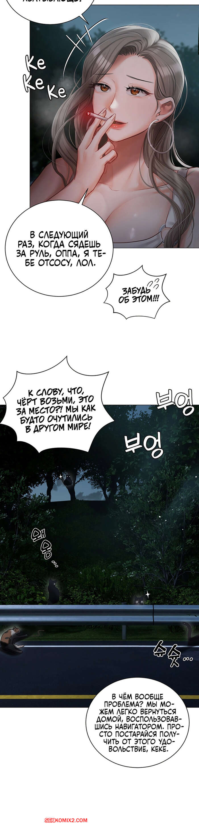 Порно комикс Резиденция Хенджон. Часть 25 и 26 и 27. hyeonjeong ui jeotaeg Горячая брюнетка пригласила парня прокатиться вместе и стала его соблазнять на секс. Она припарковалась у дороги, где задрала свое платье и дала себя трахнуть.