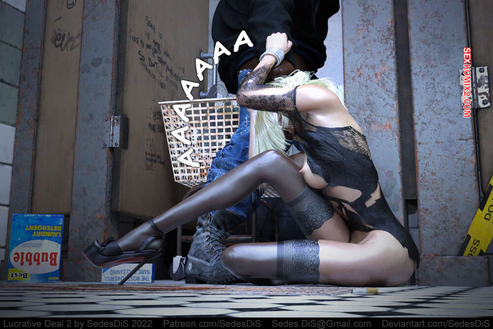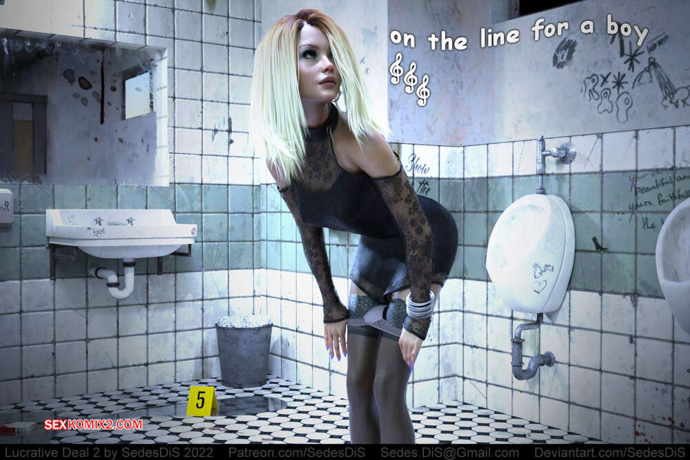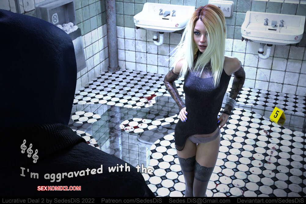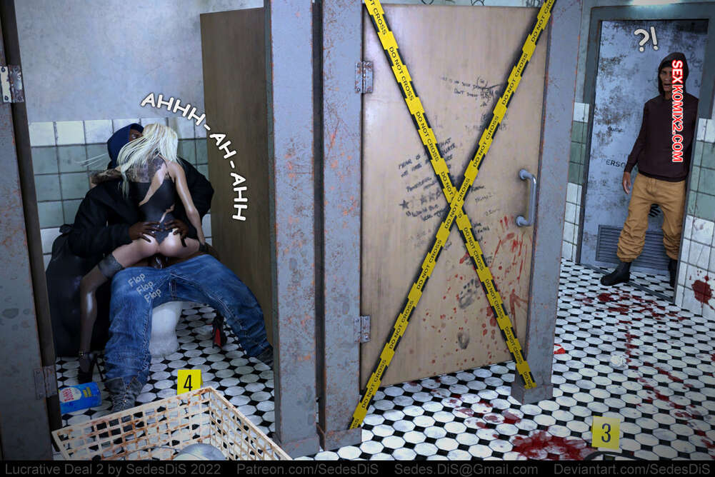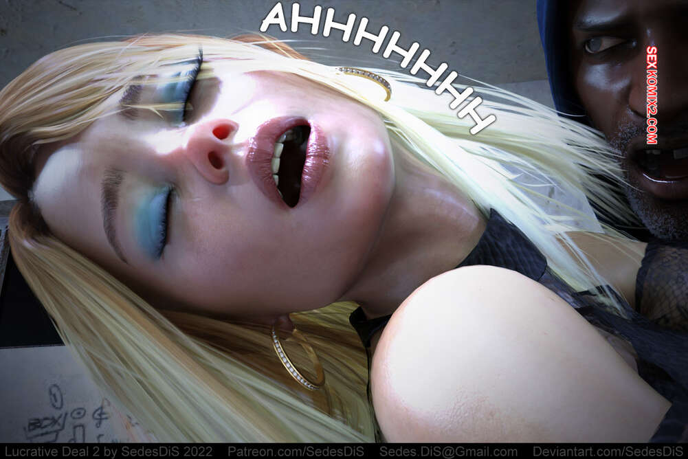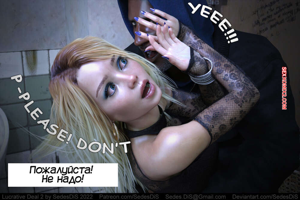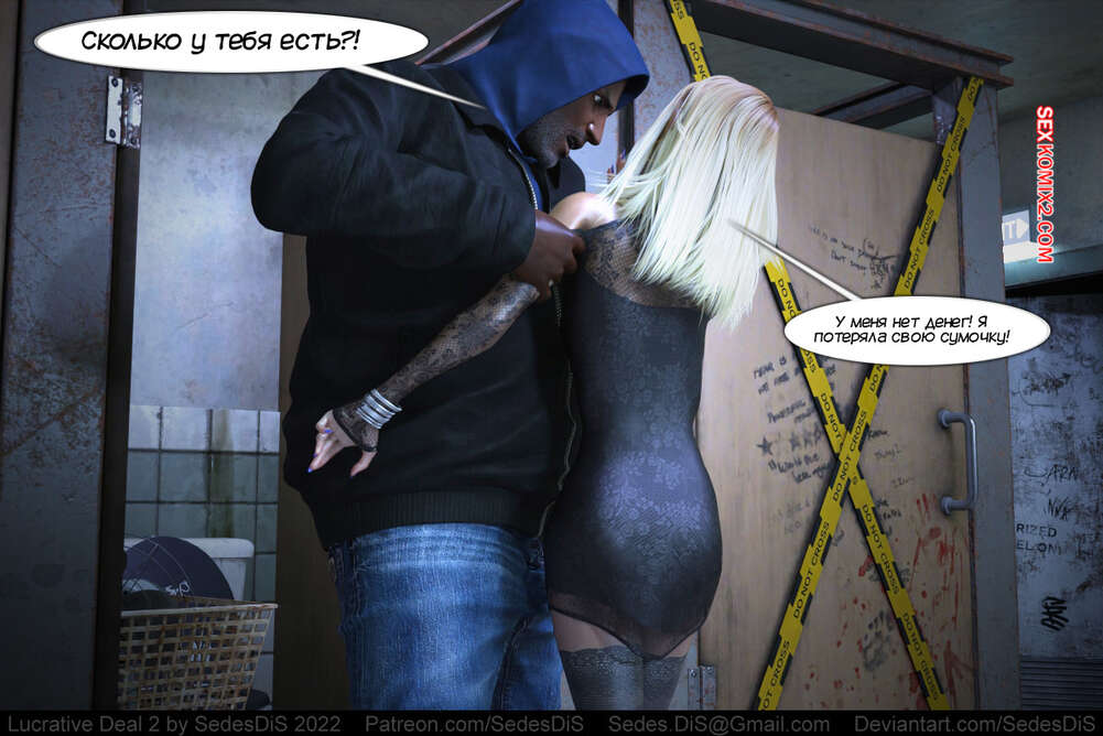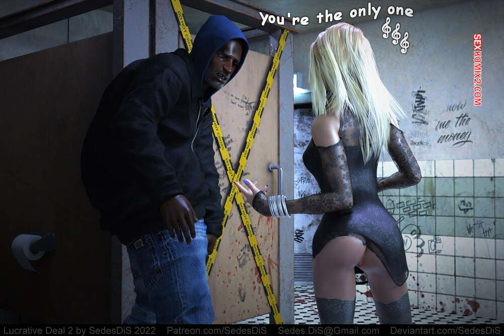 Порно комикс Выгодная сделка. Часть 2. Lucrative Deal. SedesDis Горячая блондинка хотела в туалет и оказалась в заброшенном здании, где ее встретил темнокожий парень. Она испортила его ковер и он решил ее наказать, хорошенько оттрахав.