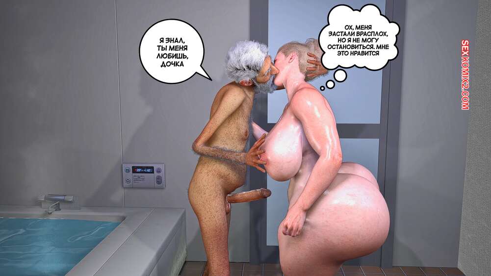 Порно комикс Забота о моем отце. Часть 5. Care my father. Bartolito3d for sexkomix2.com Возбужденный старик зовет свою горячую дочь принять ванну вместе. Там она не может устоять перед соблазном и раздвигает ножки в позе раком перед отцом, чтобы он ее выебал.