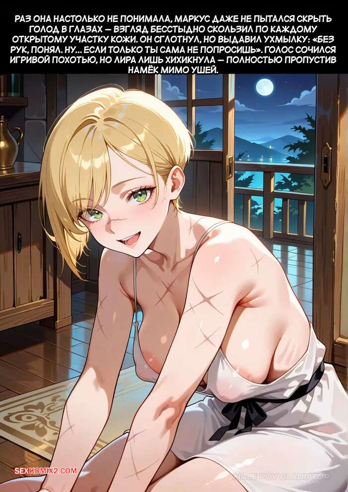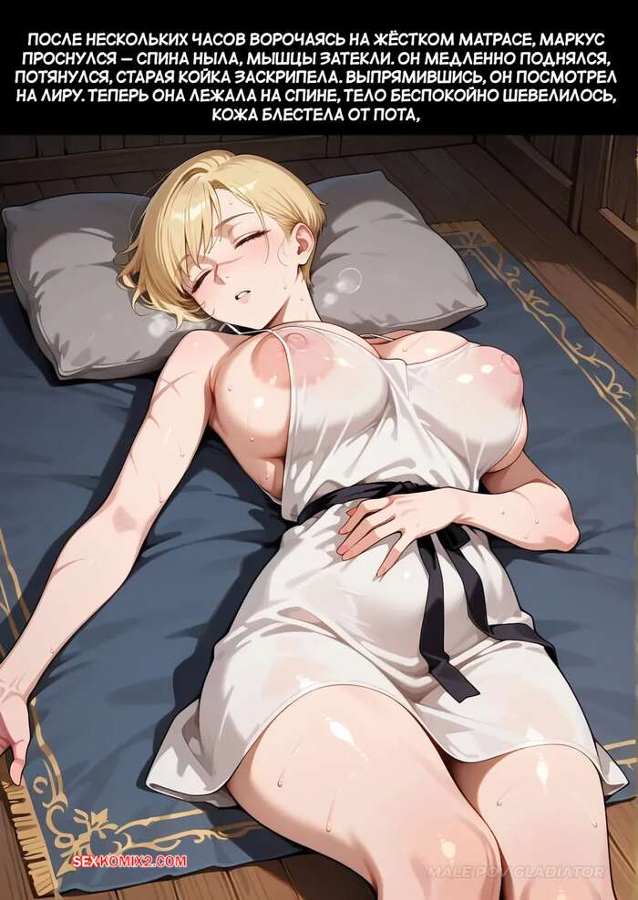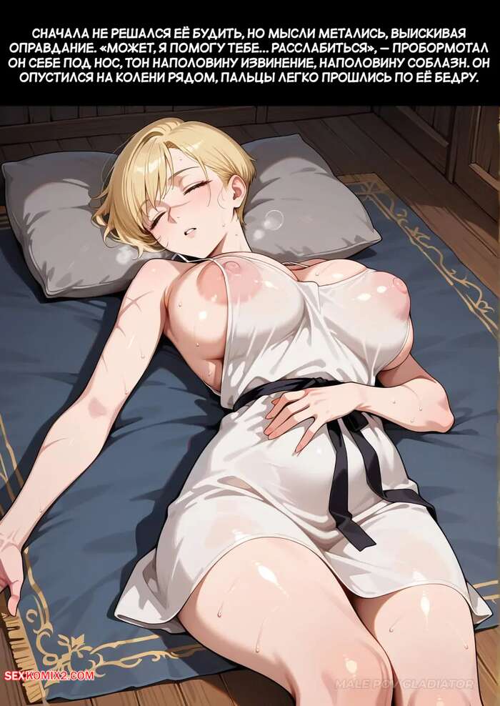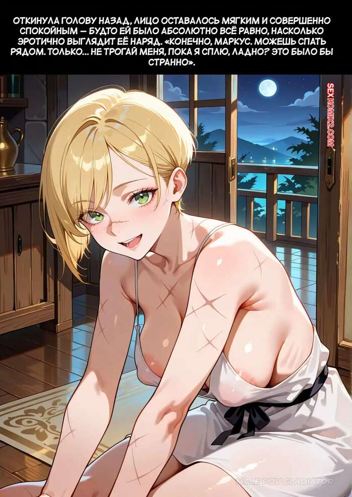 Порно комикс Мужской взгляд. Гладиатор. Часть 10. Male POV Gladiator. Twisted Ideas Studio Горячая блондиночка легла спать, а парень решил воспользоваться моментом. Она раздвинул ножки красотки и стал любоваться ее пизденкой, после чего покрыл девушку спермой.