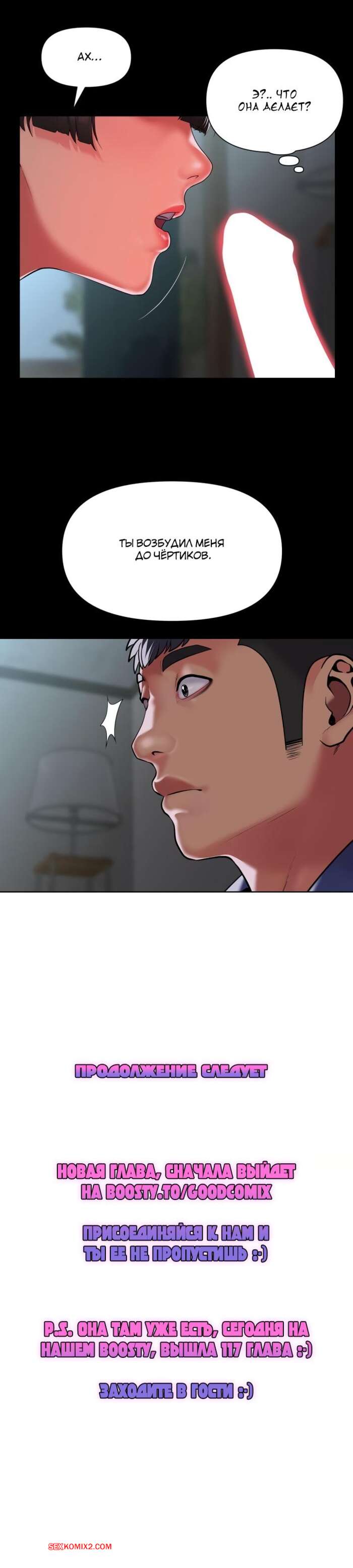 Порно комикс Женский компаньон. Часть 109 и 110. bunyeohoejang Похотливая брюнетка не может себя контролировать рядом с парнем. Она разделась и встала раком на кровати и раздвинула ножки, чтобы он хорошенько выебал ее пизду.